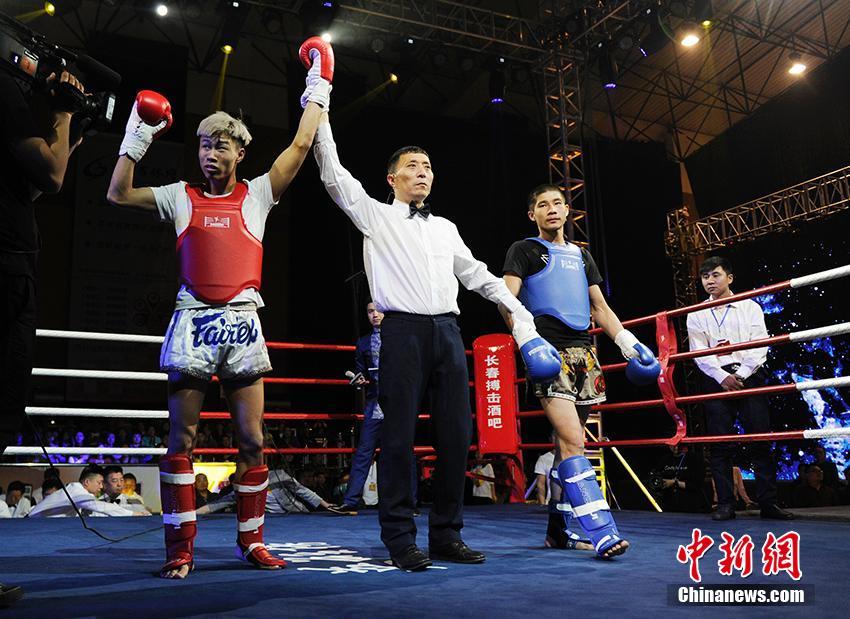 今年18岁的冯天豪来自四川省巴中市,儿时的他在电视上看到自由搏击比赛便一发不可收拾爱上了拳击。冯天豪12岁时只身一人外出学习功夫,如今小小年纪的他就已多次在自由搏击比赛中取得不凡的成绩。他说,他的梦想是好好打比赛,回到家乡开一家武馆。图为冯天豪在开场第一局就ko对手,获得胜利。 张瑶 摄
