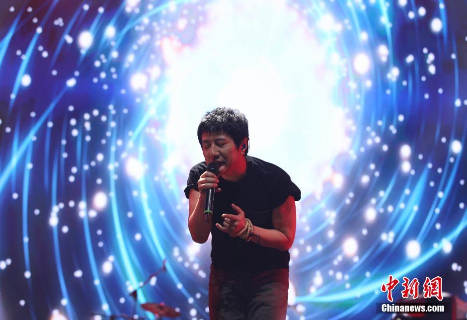 5月9日晚,中国乐势力———摇滚30年巡回演唱会在京开唱。黄家强,黑豹乐队,唐朝老五,郑钧,张楚,逃跑计划等众多摇滚乐实力乐手出席,为中国摇滚30年献声。图为郑钧开唱。