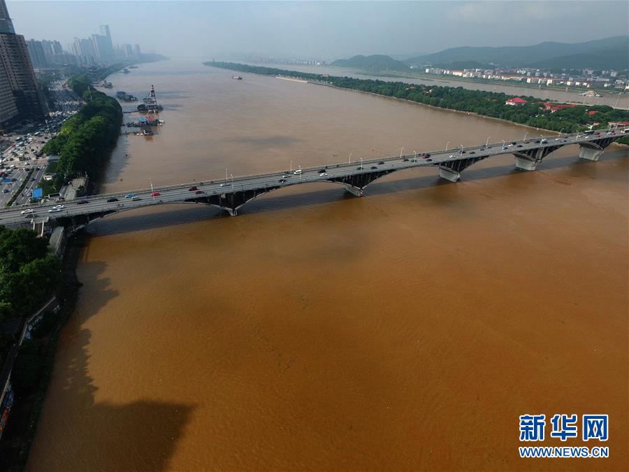 洪峰过境时的长沙橘子洲大桥(5月10日摄)。记者从长沙水文站获悉,5月10日上午10点,湘江今年入汛以来最高洪峰安全通过长沙,最高水位为34.05米。据悉,受强降雨影响,湘江中上游水位连日来全线上涨,防汛形势紧张。记者从湖南省防汛抗旱指挥部了解到,这轮降雨集中在永州、郴州、娄底、常德、怀化等地,导致了洪涝、风雹灾害。据湖南省初步灾情统计数据显示,截至9日,湖南省受灾人口61.56万人,2人受雷击和房屋倒塌死亡,6555人被紧急转移安置。目前,当地防汛部门正加强值守,全力做好强降雨防范工作,确保安全度汛。新华社记者 龙弘涛 摄
