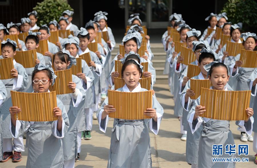 5月10日,石家庄市鹿泉区第二实验小学的学生在诵读国学经典。河北省石家庄市鹿泉区第二实验小学从2008年起开设国学教育课程,全校学生每周进行一个课时的学习,诵读《三字经》《论语》等国学经典,在学习中国传统文化的同时提升道德修养。新华社记者 王晓 摄