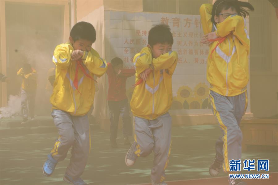 5月10日,甘荫塘小学学生在志愿者引导下进行紧急疏散演练。在第8个“全国防灾减灾日”前夕,贵州青年志愿应急救援服务总队的志愿者来到贵阳市南明区甘荫塘小学,向学生讲解防灾减灾自护自救知识,并举行模拟地震、火灾等灾害的紧急疏散演练。新华社记者 杨楹 摄