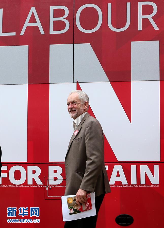 5月10日,在英国伦敦,英国工党领袖杰里米·科尔宾参加工党留欧拉票巴士启动仪式。 新华社记者韩岩摄