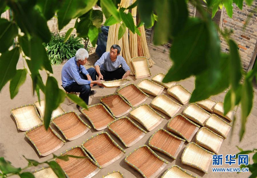 5月10日,河北省广宗县大辛庄村柳编艺人李跃俭(右)和李跃芹检查柳编簸箕的质量。河北省广宗县柳编技艺历史悠久,距今已有300多年的历史。目前,广宗县有近百位柳编艺人,每年生产各种柳编产品6万多个,产品销往北京、天津、山东、河南等省市。广宗柳编所采用的柳条柔软易弯、粗细匀称,可编织成各种家用器具和工艺品。2008年,广宗柳编技艺入选第二批国家级非物质文化遗产保护名录。新华社记者朱旭东摄