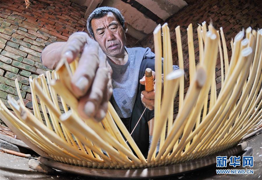 5月10日,河北省广宗县大辛庄村柳编艺人李跃俭在编制柳条簸箕。河北省广宗县柳编技艺历史悠久,距今已有300多年的历史。目前,广宗县有近百位柳编艺人,每年生产各种柳编产品6万多个,产品销往北京、天津、山东、河南等省市。广宗柳编所采用的柳条柔软易弯、粗细匀称,可编织成各种家用器具和工艺品。2008年,广宗柳编技艺入选第二批国家级非物质文化遗产保护名录。新华社记者朱旭东摄