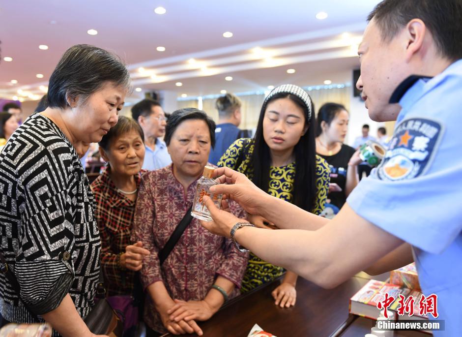 民警向市民介绍假酒的危害。 周毅 摄