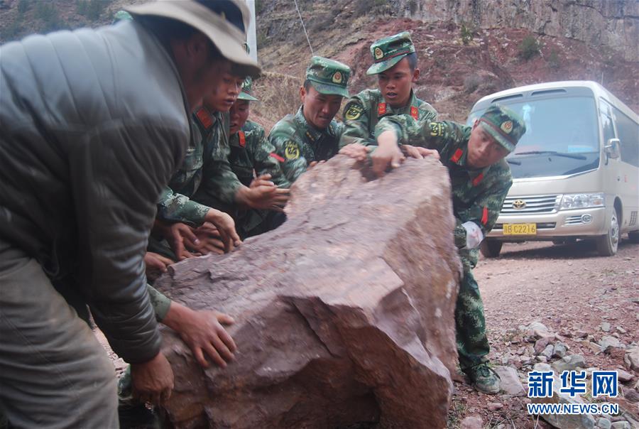 5月11日,武警昌都市支队丁青县中队官兵在清理昌都市丁青县嘎塔乡果东村道路。当日9时15分,西藏昌都市丁青县发生5.5级地震,已造成震中嘎塔乡60多名村民受伤,其中6人伤势较重。灾情发生后,武警西藏总队第一时间启动应急预案,武警昌都市支队丁青县中队派20人先遣救援队,携带救灾设备和物资,赶赴震中嘎塔乡开展搜救行动。新华社发(颜银 摄)