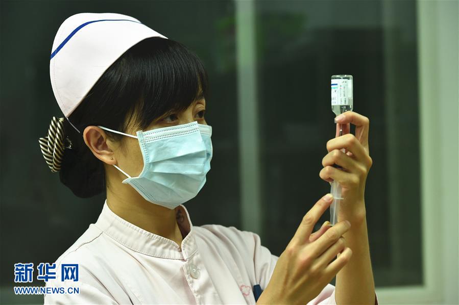 5月10日,李颖在为宝宝配药。 新华社发(曹阳 摄)
