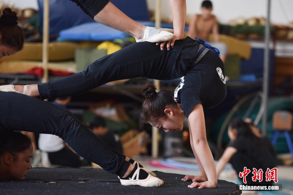 5月11日,女孩们在教室排练柔术节目《独龙姑娘》。俗话说,台上一分钟,台下十年功。对于云南文化艺术职业学院杂技学院的柔术女孩们来说,看似轻巧的表演,靠的则是日复一日持续不断的训练,其中艰辛是常人难以想象的。经过5年的不断学习和磨练,如今她们逐渐成长为合格的杂技演员,即将进入各个知名杂技团,与众多观众见面。中新社记者 刘冉阳 摄