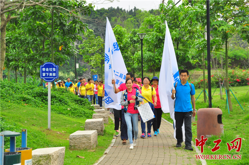 4月23日上午,中建二局一公司深圳分公司100多名员工在“特级企业,深圳基因” 旗和司旗指引下,行走在青山绿水、鸟语花香的深圳罗湖5号绿道山水休闲线上,用脚步走完10公里。他们用脚步丈量美景,用笑容拥抱春光,迎接五一国际劳动节的到来,沿途向社会展现了特级企业的精神风采。(文:王义生;摄影:葛高进)