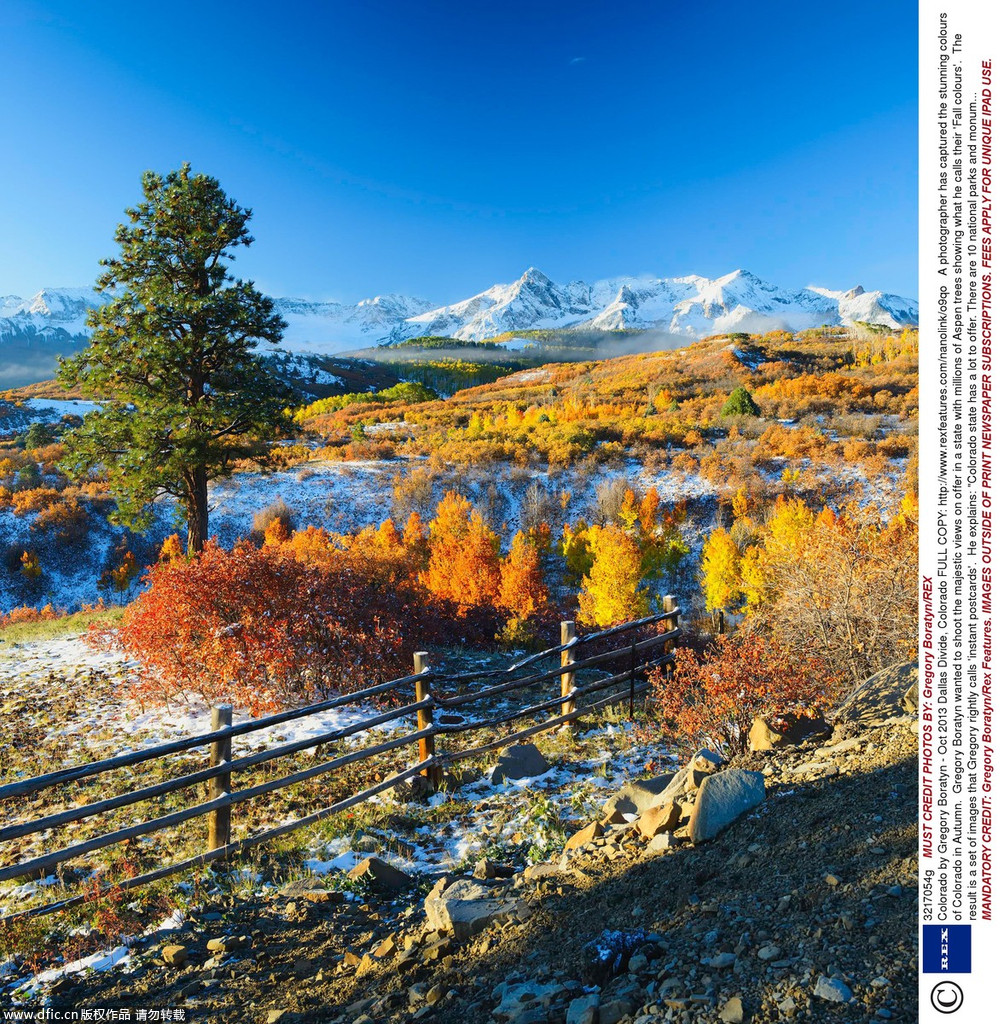 当地时间2013年11月13日报道,美国科罗拉多州,摄影师Gregory Boratyn希望能拍到一点代表秋天的颜色,于是,他去了科罗拉多州,因为在那里,有数百万棵白杨树,白杨树在秋天的时候会变色,黄灿灿的一片,真的是美极了。在那里,真的是随便哪个角度拍摄都很完美,每一张都能做明信片。