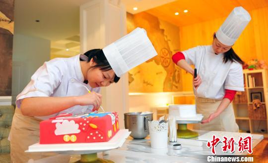 12月16日,马佳佳制作翻糖蛋糕。中新社发 于海洋 摄