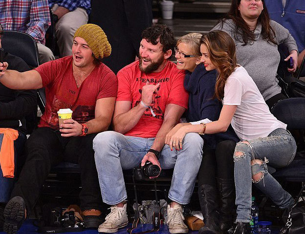 刚过完圣诞节的米兰达,和表妹现身纽约麦迪逊广场看球赛,现场不忘拿手机拍照。米兰达着洞洞裤显潮范儿,宽松的白衣隐约透出黑bra,性感美丽侧露。
