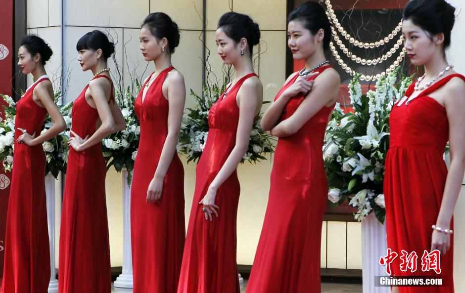 11月3日,在北京举行珍珠展仪式上,模特现场为宾客展示珠宝首饰秀。 中新社发 钱兴强 摄