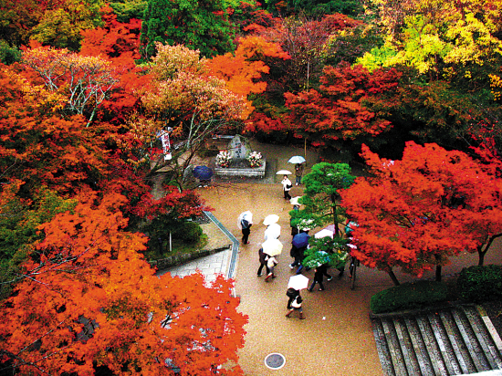 日本秋色景观比较出名的京都、大阪,从11月底到12月中旬都是观赏季节,而整个本州地区在11月份都很美。