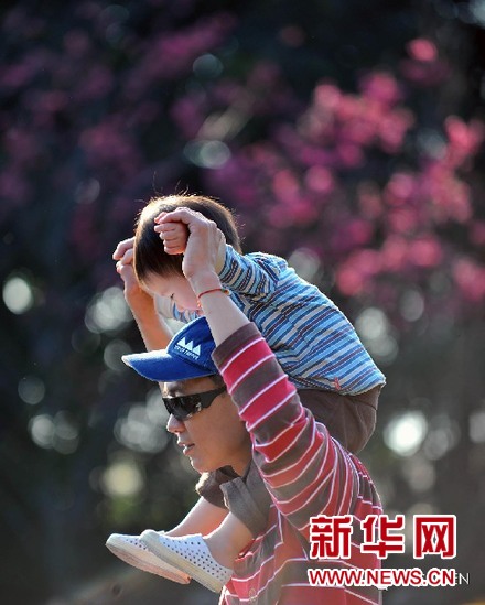 阳明山,小宝贝也能体会赏樱花的快乐。