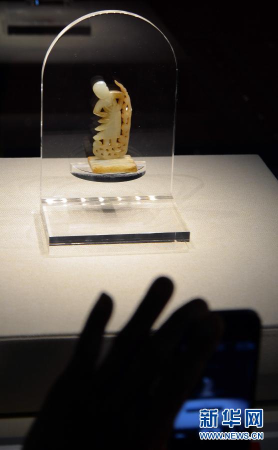 11月27日,参观者在浙江省博物馆拍摄一尊唐五代的玉善财童子立像。当日,“瑞象重明——雷峰塔文物陈列展”在位于杭州的浙江省博物馆开幕。该展是雷峰塔倒塌90年来的首次大规模文物展。 新华社发(施健学摄)
