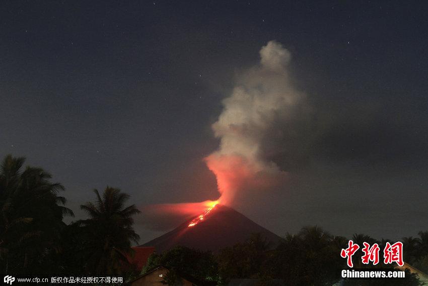 印尼索普坦火山喷发 火光冲天映红天际