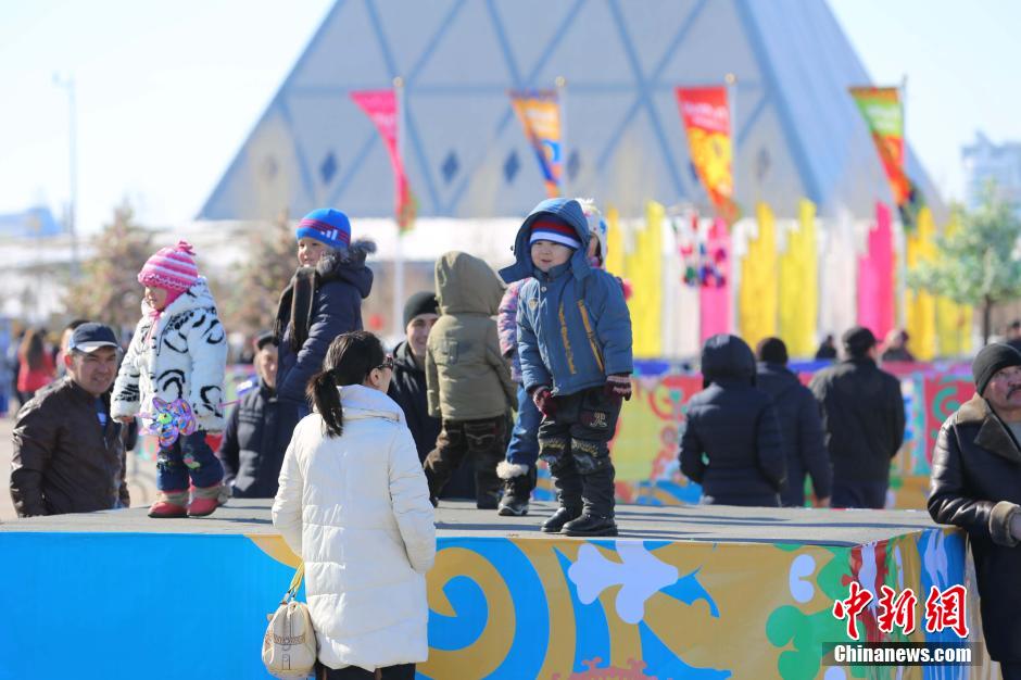 3月21日,哈萨克斯坦民众在首都阿斯塔纳欢度“纳吾热孜节”。中新社发 文龙杰 摄