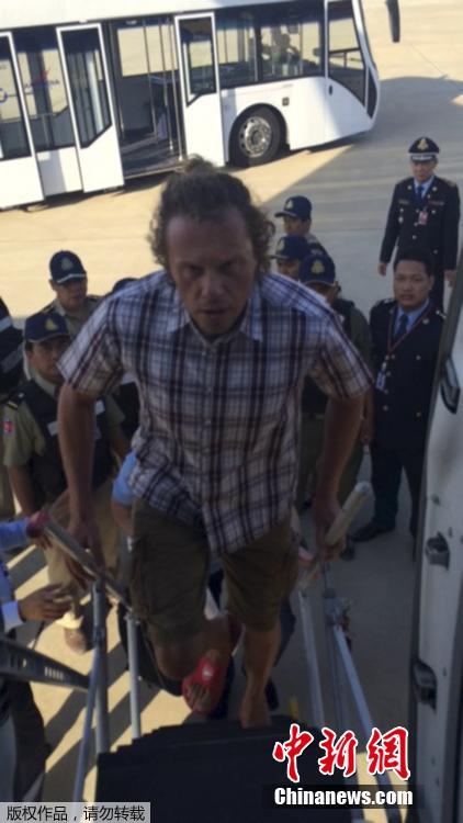 当地时间2015年5月17日,俄罗斯莫斯科,被指搭载谢尔盖·波隆斯基的飞机降落机场。柬埔寨政府17日把俄罗斯前地产大亨谢尔盖·波隆斯基遣返回国。他将因涉嫌巨额诈骗面临审理。俄罗斯内政部17日说,波隆斯基由内政部人员押解,返回俄罗斯,将按照俄罗斯法律受到起诉。