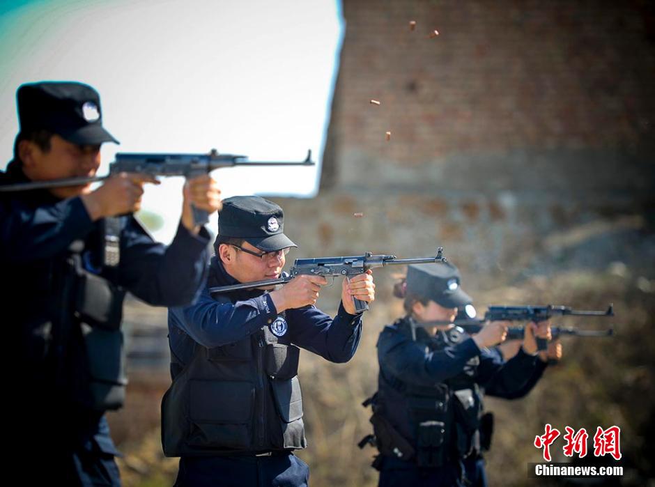 5月13日,新疆乌鲁木齐市公安局特警八支队六大队的特警队员在该市市郊的射击靶场进行警用枪械实弹射击考核。据介绍,该特警队八支队肩负防暴处突的重要职能,日常训练强度大,体能、射击术、擒敌术、战术成为特警队员每月的考核项目,以保证特警队员始终处于最佳战斗状态。刘新 摄