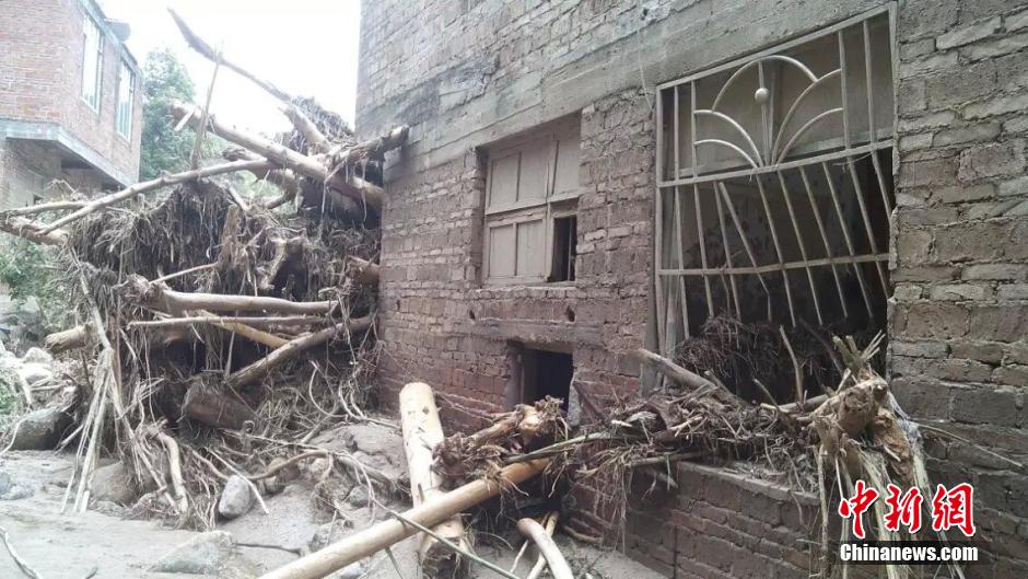 融水县三防镇兴洞村小洋洞屯在洪灾泥石流过后,村民房屋被破坏。 贾显谊 摄
