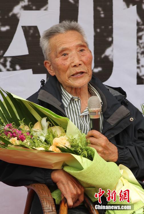 图为94岁高龄的抗战老兵刘俊贤为大家忆述70多年前抗战故事。周毅 摄