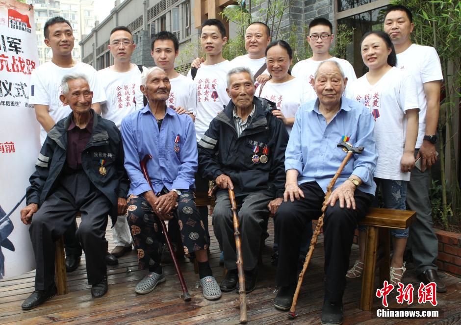 图为4名9旬抗战老兵与志愿者们合影。周毅 摄