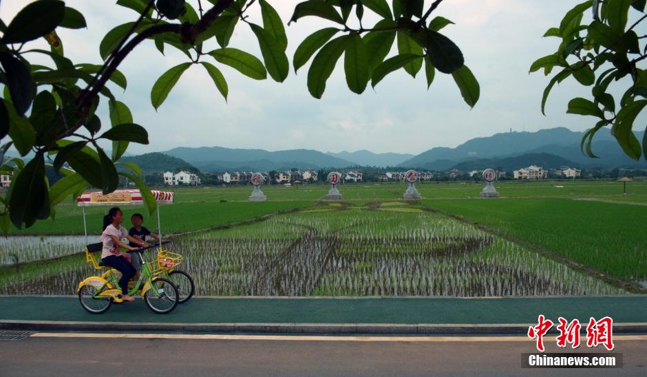 水稻当笔,水田当纸,湖南省安仁县农民通过种植五彩水稻,尽情画出蝴蝶、人像、彩虹等作品,为当地休闲观光农业增添了独特的生态风味。这片五彩水稻种植在安仁稻田公园内,这是一座集农业示范、农耕体验、旅游观光等于一体的“农业湿地公园”,其中连片稻田1.4万亩,从高空远望,整个园区像一个巨型的“田”字。何超 摄