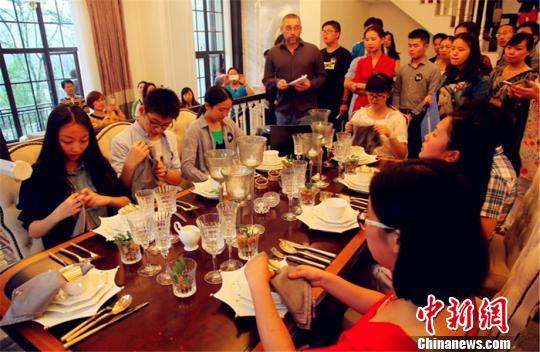 重庆第二外国语学校ASDAN素质学分模拟课程之“餐桌礼仪与红酒品鉴”,特邀的法国籍外教正在全英文教学。 欧阳祖兵 摄