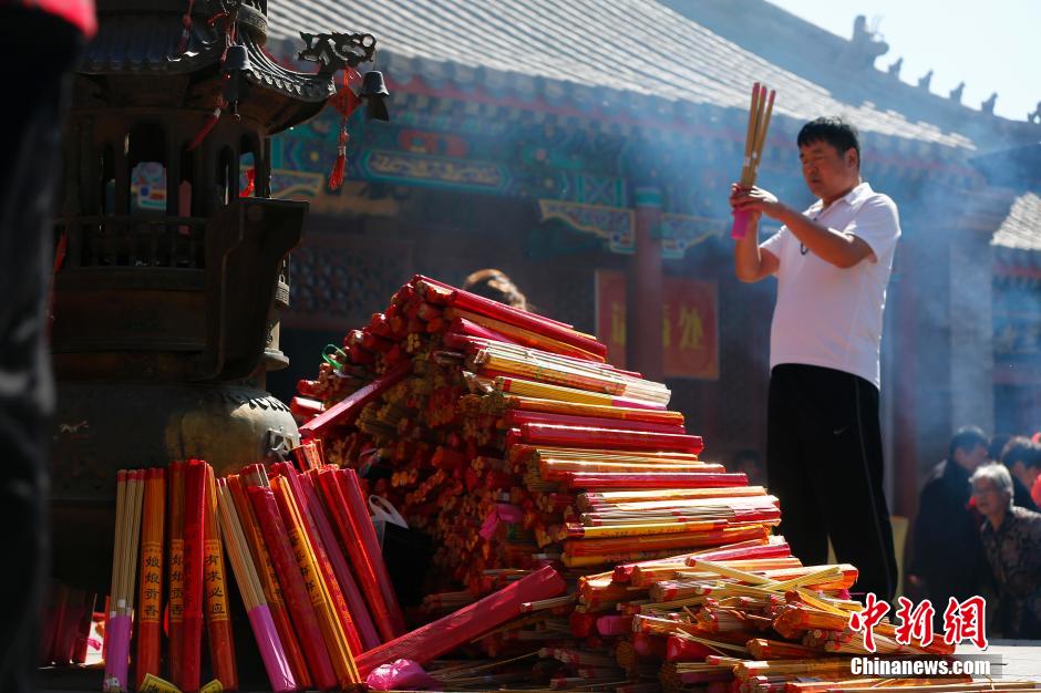 5月18日,有着数百年历史的北京妙峰山庙会再次拉开序幕,该庙会延续了传统庙会的风俗,充分展示北京民俗文化的特征。活动以传统民间花会表演、施粥布茶、舍馒头等为主,还为游客提供系福牌、走福路、逛福院等祈福纳祥活动。妙峰山庙会又称娘娘庙香会,始于明朝崇祯年间,距今已有400多年历史。庙会将持续至6月1日。中新社发 富田 摄