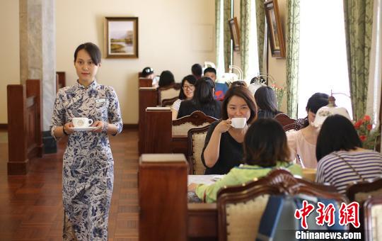 市民在南京中山陵美龄宫第一夫人咖啡馆内感受下午茶时光。 泱波 摄