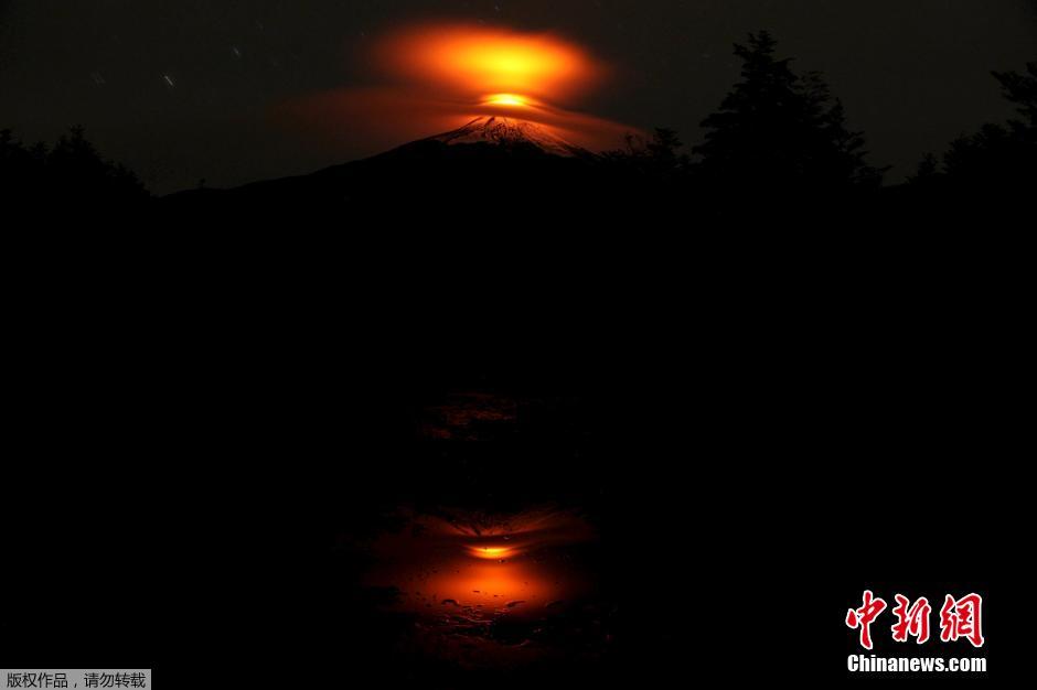 5月18日,智利比亚里卡火山喷发,火焰染红云朵场面壮观。