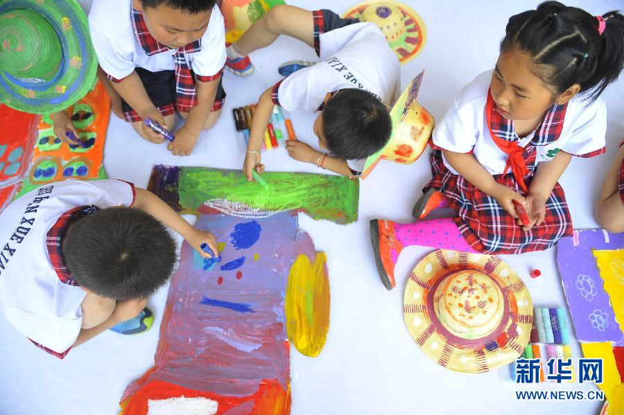 5月26日,参加活动的学生在中国美术馆进行集体绘画创作。当日,2015年中国美术馆迎“六一”专场少儿活动暨公益合作启动仪式在北京中国美术馆举行。中国美术馆携手阳光未来艺术教育基金会共同邀请百余名打工子弟学校的学生,来到活动现场参加“童绘美丽家园”主题绘画创作,共同描绘对祖国和故乡的热爱,迎接“六一”儿童节的到来。新华社记者鲁鹏摄