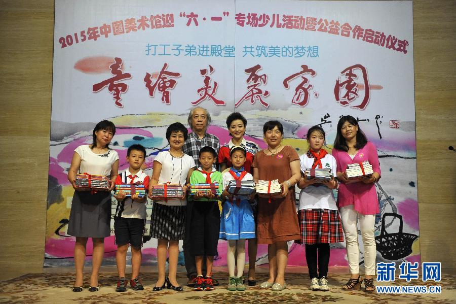 5月26日,参加活动的嘉宾向农民工子弟学校的学生代表捐赠图书。