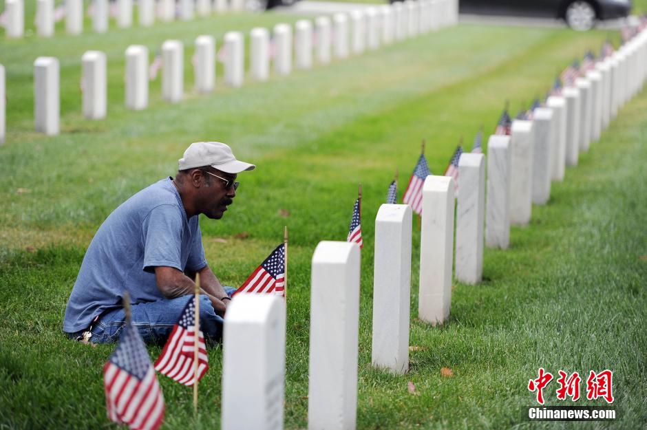 当地时间5月25日,美国阵亡将士纪念日,人们来到洛杉矶国家公墓,以各自的方式纪念在战争中死去的将士们。中新社发 毛建军 摄