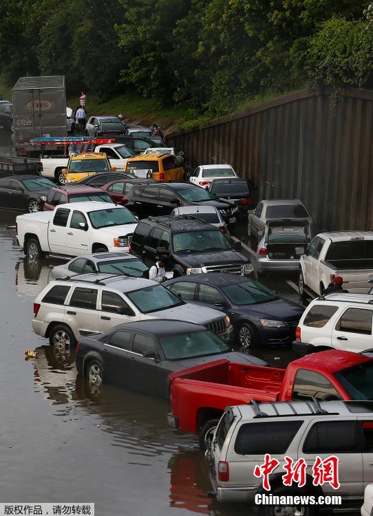 当地时间2015年5月26日,美国德克萨斯州休斯顿遭暴雨袭击,车辆被洪水淹没。美国南部的德克萨斯州和俄克拉何马州在过去两天连续遭到暴风雨袭击。