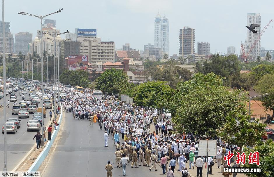 当地时间2015年5月26日,印度孟买,印度国大党成员组织大规模游行,反对印度总理莫迪。5月25日,莫迪在就任一周年的纪念集会上对上千名支持者表示,自上任以来一直打击腐败,并结束了国家的“抢劫”行为。