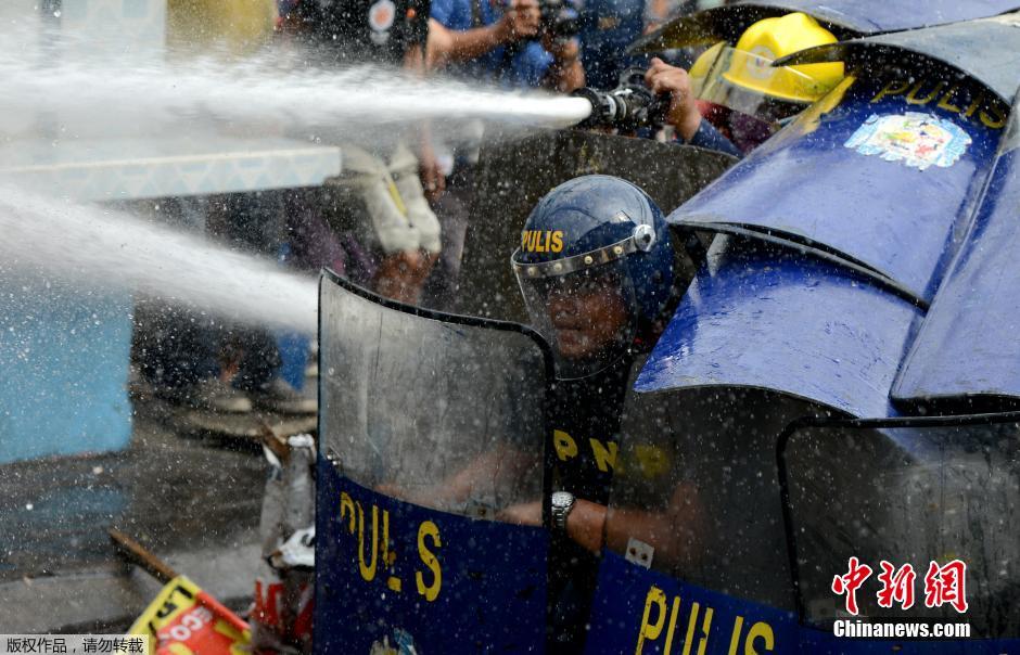 菲律宾一非法定居点遭强拆 居民与警方发生冲突