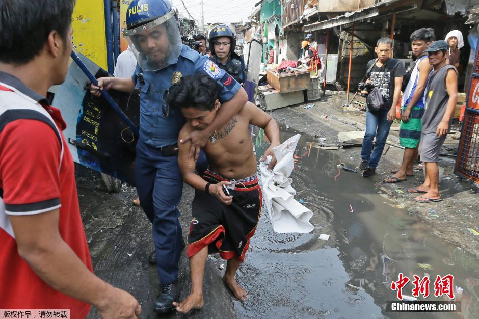 当地时间2015年5月26日,菲律宾马尼拉,当地一个非法临时定居点被强拆,该地区将被改建为一个商业中心。大约500户居住在里面的家庭受到强拆影响。当地居民和警察发生冲突。