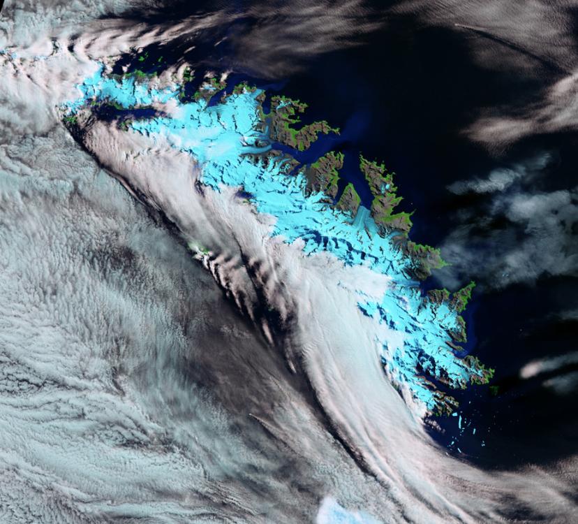 欧洲航天局(ESA)日前发布了南乔治亚岛的卫星图像。云层遮挡了西南海岸的景色,只有东北海岸和海岸边的冰川可见。岛上最大的冰川是福特纳冰川,位于图片的中上部。
