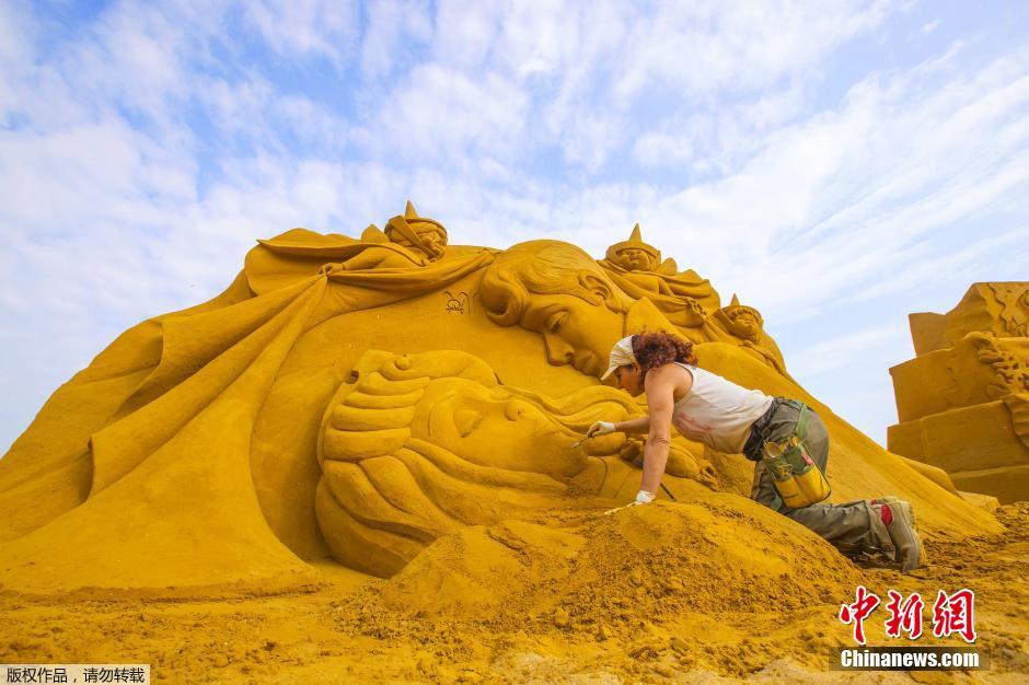当地时间2015年6月12日,比利时奥斯坦德市,当地将举办沙雕节,30位来自世界各地的沙雕艺术家齐聚一堂,创作了以星球大战,迪斯尼动画和皮克斯电影人物为主题的沙雕作品。此次沙雕节将需要6000吨沙子,这个数量的原材料需要200辆卡车运送。沙雕节将于6月13日开幕,持续至9月6日。