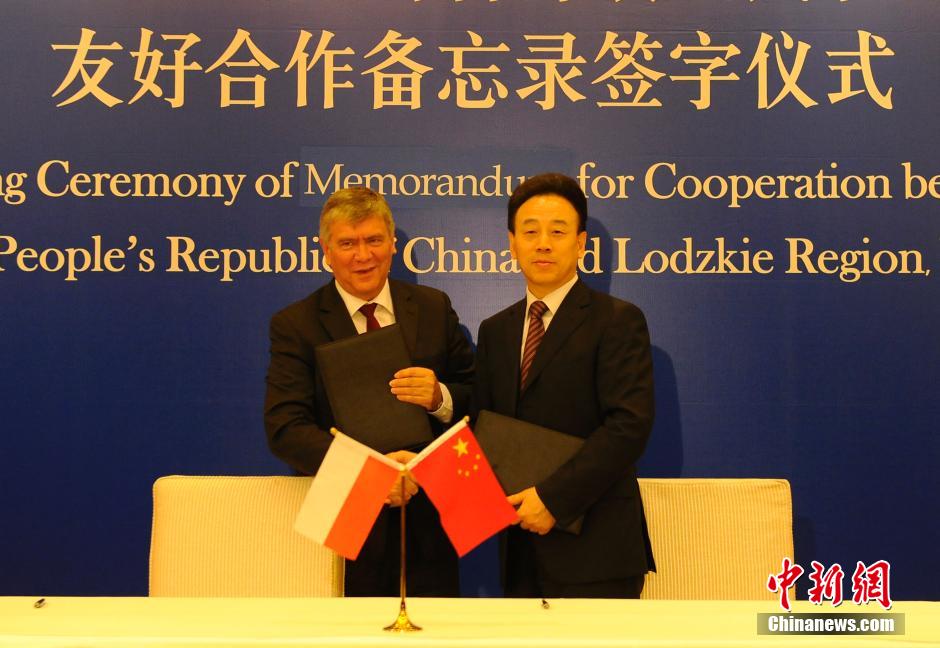 6月18日,波兰外交部副部长卡茨帕尔赤克率领包括政府官员、机构代表和企业精英在内的代表团访川,出席了四川省与波兰罗兹省友好合作备忘录签字仪式、波兰-四川商务论坛、波兰驻成都总领事馆开馆仪式等。图为友好合作备忘录签字仪式现场。安源 摄