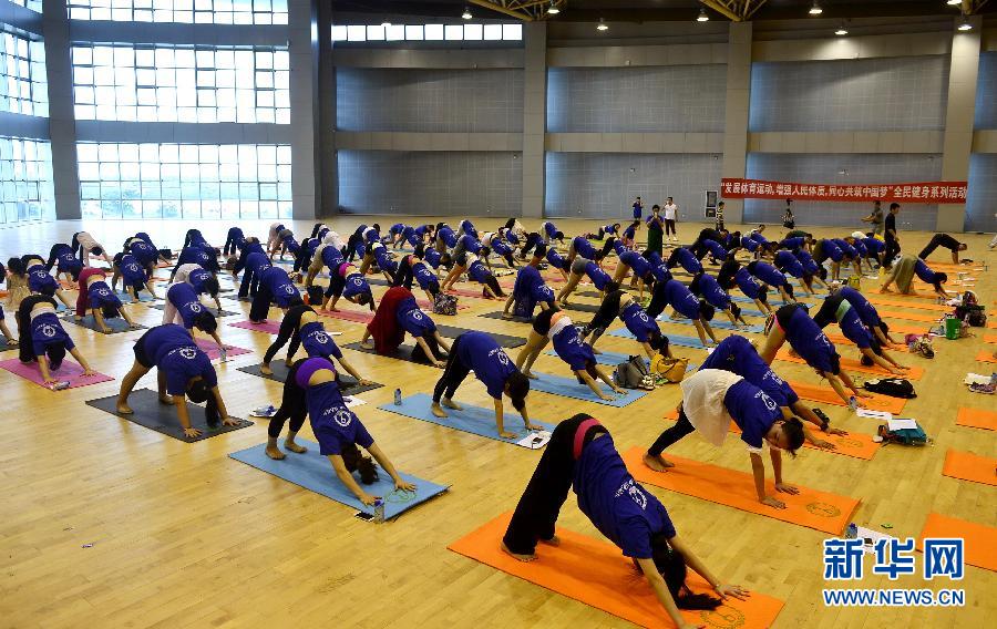 当日,为了迎接6月21日首个“国际瑜伽日”,江西省200多名瑜伽爱好者在江西省奥林匹克中心进行瑜伽表演活动。据介绍,江西省各地的一百多家瑜伽协会、瑜伽馆还将举办“百馆万人”瑜伽展示、科普咨询活动,并在21日当天免费向市民开放。新华社记者周密摄