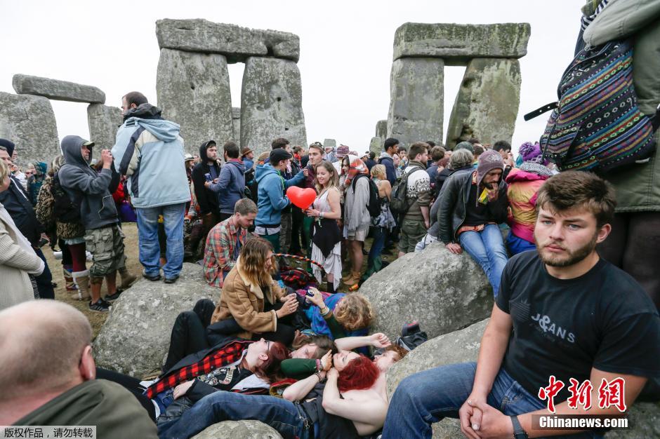 当地时间2015年6月21日,英国索尔兹伯里,数千民众聚集在巨石阵迎接夏至日日出的到来。