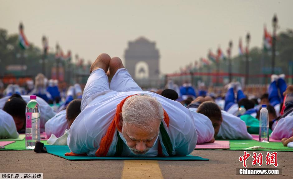 印度总理莫迪率数万人同秀瑜伽创纪录