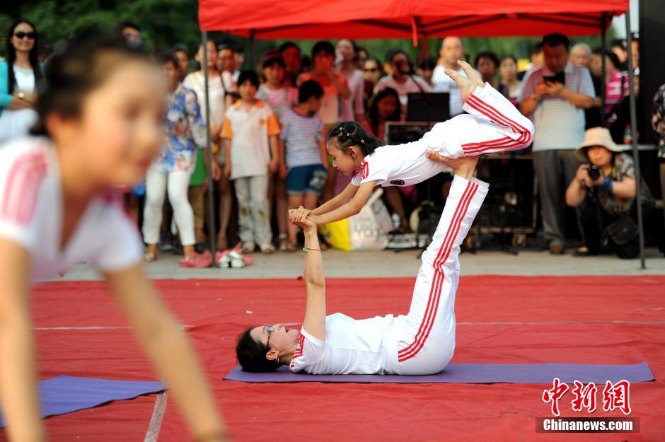 陕西咸阳千人广场练瑜伽纪念国际瑜伽日