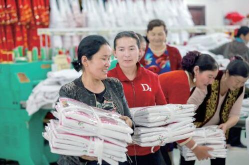 疆呼图壁县石梯子乡的妇女以前过着以放牧为主的生活。近年来,石梯子乡成立了家乡乐劳务服务农民专业合作社,妇女们纷纷来到这里学习刺绣技能,目前该合作社共吸纳当地牧民68人就业,月平均工资2500余元。近日,合作社的牧民正在整理刺绣作品。 陶维明 摄