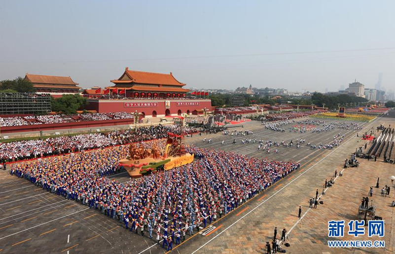 10月1日上午,庆祝中华人民共和国成立70周年大会在北京天安门广场隆重举行。 这是群众游行。 新华社记者 琚振华 摄