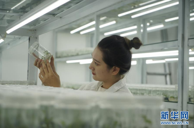 10月16日,工人在一家企业育苗基地管理北苍术幼苗。河北省青龙满族自治县采用“公司+基地+农户”的方式,发展中药材种植11万亩,年产值3亿元,带动全县7000余户贫困户实现增收。新华社记者 邢广利 摄