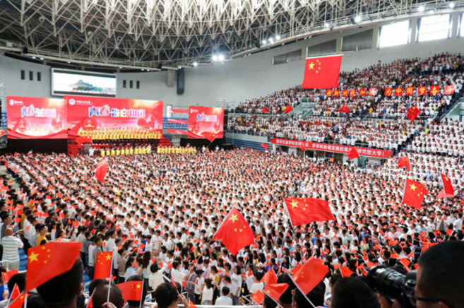 7000余名中国石油大学(华东)师生唱响赞歌(孙萌/摄)图片来源:人民网
